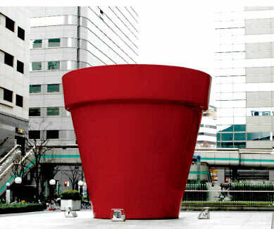 “FARET立川”占地面积5.9公顷。1982年委托都市整备公团东京支社作为商业和办公用地纳入大规模都市开发项目中,定位为“城市商业核心工程”。采取城市更新再开发的方式,于1994年10月竣工。项目的用途包括办公楼、宾馆、大型百货公司、电影院、图书馆等11栋建筑物组成的7个街区,开发经费高达30亿美元。在这里的上班族约1万人,游客每天超过3万,可提供约1000个停车位。就是这样一座仅有7个街区的“小城”,公共艺术的多样化却十分引人注目。“FARET立川”的公共艺术项目,同样依靠城市再发展的投资,与城市建设同步。项目吸引了36个国家、92名艺术家共同参与公共艺术创作。大到饭店门口的艺术造景,小至水龙头、消防箱、公共坐椅、地面铺装、通风口,都经艺术家重新打造。结果小小的立川市竟拥有了109件公共艺术品,使之成为全日本公共艺术最密集、也最融入市民生活场域的美妙市镇。