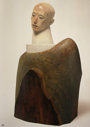 最近我有越来越多的机会在照片或其他书的封面上去观赏舟越桂先生的雕塑。每一次,我都感觉到那种永恒的沉寂。随着一次又一次的观赏,我开始注意到一些其他的东西,那些站在肃然而静止的空气中的雕塑形象似乎在试图说出点什么。无论是紧闭的还是微张的嘴,词语开头的音节好像就盘旋在他们周围。不过,那开头的音节却从未出声。词语在努力向外冒,但却定住或如无声的音一般在那儿摇曳,不是潜伏在唇齿之间,而是神秘地盘旋在每一个雕像的周围。