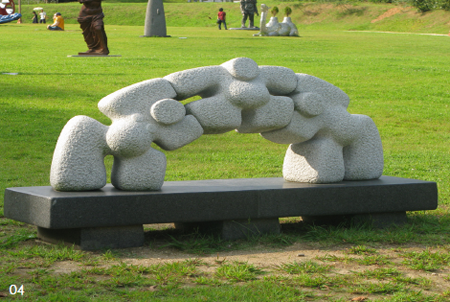 木兰美术馆是一个占地很小的户外美术馆,它坐落在闹市中的一方绿地之上。这座美术馆的特色,既体现了韩国园林的特征,又融汇了中国园林的意境,整个美术馆体现出一种精致、闲逸的意蕴。这里的主人是一位气质高贵的女企业家,她在这里精心营造着心目中的理想境地。在别致的现代园林设计中,融入公共艺术的理念,使许多雕塑精品与环境和谐地融为一体。这里既有学院气息浓郁的写实雕塑,又有颇具时代感的抽象艺术,以及融合了多种材料和艺术语言的装置作品。孩童们在老师和家长的陪伴下嬉戏于绿茵之上,欢快的笑声回响在艺术的怀抱之中,构成一幅动人曼妙的画面。